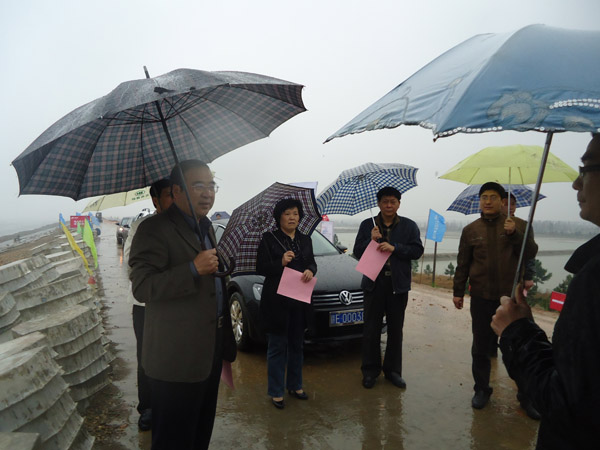 2012年3月30日上午,江西省上饒市人大副主任鄭小平冒雨來到我公司承建的鄱陽(yáng)湖二期防洪工程第六個(gè)單項(xiàng)康山大堤除險(xiǎn)加固工程康1、康2、康3標(biāo)項(xiàng)目視察指導(dǎo)工作。