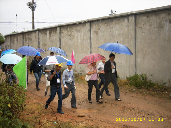 孫廳長一下車直奔工地施工現(xiàn)場,并主動與現(xiàn)場施工人員握手。當走到防洪墻施工現(xiàn)場時,孫廳長停住腳步,聽取完施工情況匯報后,他對駐守在施工現(xiàn)場的參建各單位及個人表示問候,祝大家國慶節(jié)日快樂,他要求各單位再接再厲,按省五河辦的相關(guān)部署確保按期完工。最后,孫廳長要求各單位把好質(zhì)量和安全關(guān),確保工程完工不出任何事故。
