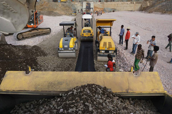 埃塞俄比亞旱季熾熱的風(fēng)撲打著人們的面龐,也映襯了瀝青混凝土芯墻現(xiàn)場火熱的施工場景。自從2015年3月6日簽訂合同以來,Wolkite瀝青混凝土項目施工緊鑼密鼓,在進行了大量實驗和前期準備的基礎(chǔ)上,取得了實質(zhì)性進展,截止5月15日已完成從804m高程至816m高程的填筑,余下工作正有序進行。