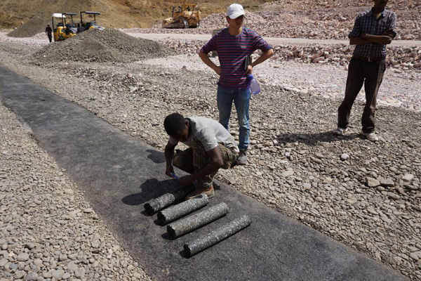 公司高度重視Wolkite瀝青混凝土芯墻的建設(shè),成立了以黃生寶為經(jīng)理的項目組領(lǐng)導(dǎo)班子,選派了一批技術(shù)過硬、經(jīng)驗豐富、善于學(xué)習(xí)的技術(shù)和操作人員,并從國內(nèi)專門聘請從事該方面工作的專家親赴現(xiàn)場進行技術(shù)指導(dǎo)和把關(guān)。在公司董事會的正確領(lǐng)導(dǎo)下,項目部全體成員緊緊圍繞著Wolkite瀝青混凝土芯墻項目全力施工。本著特事特辦的原則,國內(nèi)后勤組緊急采購發(fā)送了一大批施工設(shè)備,為項目開好頭打下了堅實的基礎(chǔ)。為了優(yōu)質(zhì)高效地完成任務(wù),項目組全體人員精誠團結(jié)、夙興夜寐,不計白天黑夜,不管分內(nèi)分外,取得的成果得到了業(yè)主和監(jiān)理的肯定。從制定施工方案和技術(shù)指標,到裝配實驗儀器和施工設(shè)備,從悶熱的室內(nèi)配合比工作,到烈日炎炎下的現(xiàn)場施工,無不凝結(jié)著大家的智慧與汗水。