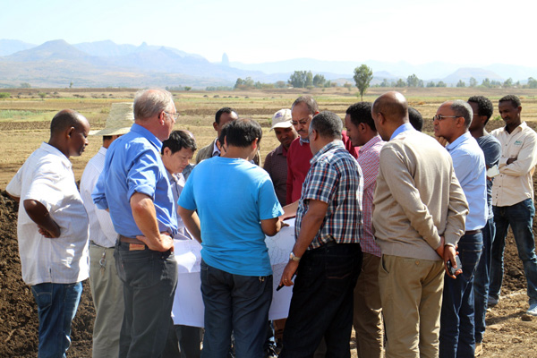 部長Motuma Mekesa一行于上午抵達項目施工現(xiàn)場,隨后對項目渠首及總渠段進行參觀考察。埃塞公司副總經(jīng)理兼項目經(jīng)理黃生寶向部長介紹了建設項目概況及項目施工進度,就項目設計、征地等提出了建設性意見和建議,表達了以“服務社會”為宗旨,與各方一道以最快的速度推進項目建設的積極態(tài)度。項目經(jīng)理黃生寶表示,我們將秉承我公司“健行天下,堰筑大同”的精神,以最好的質(zhì)量,最快的速度保證項目的實施。部長先生對我們的現(xiàn)場建設以及積極的態(tài)度表示了肯定,要求設計、征地以及業(yè)主單位積極與施工單位合作,保證項目施工質(zhì)量,加快項目施工速度。同時,相信我公司能堅定信心,積極應對困難與挑戰(zhàn),在有限的時間內(nèi)圓滿完成任務。