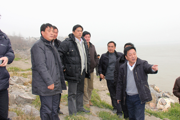 2011年1月14日,江西省水利廳廳長孫曉山在省河湖局、省水利規(guī)劃設(shè)計院相關(guān)領(lǐng)導(dǎo)、公司董事長總經(jīng)理王元旦等的陪同下,前往我司承建的長江九江段棉船堤應(yīng)急防滲工程視察工作。