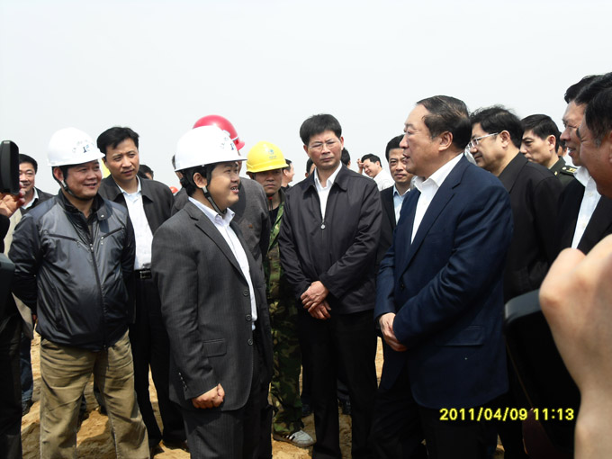 蘇榮在我司承建的唱?jiǎng)P堤除險(xiǎn)加固(決口段)工程向項(xiàng)目管理人員了解工程情況