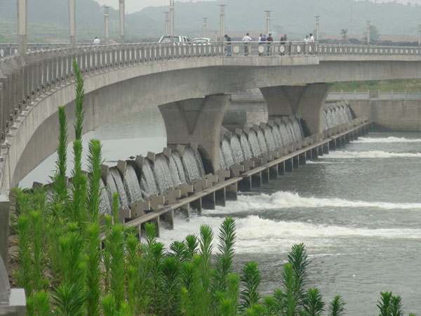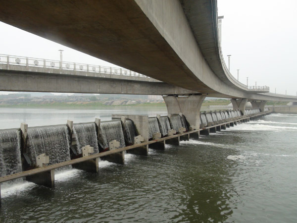 三級抬水壩與人行景觀橋下游面全景