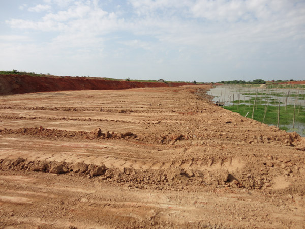 水平防滲2標(biāo)位于進(jìn)賢縣信西聯(lián)圩,是對滲漏等險情嚴(yán)重堤段進(jìn)行水平防滲處理。施工項目為填塘壓浸,處理堤線長8408米。該工程于2011年1月1日開工,2011年4月30日全部完工。