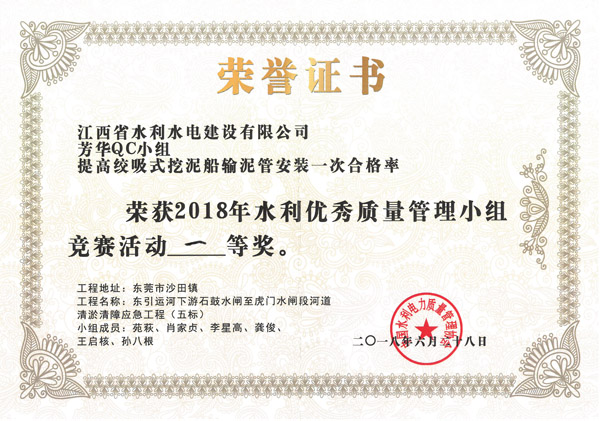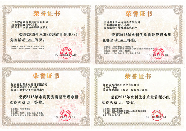 近年來,公司注重質(zhì)量管理創(chuàng)新,積極開展QC成果和技術(shù)攻關(guān)活動,工程質(zhì)量管理水平和企業(yè)創(chuàng)新能力不斷提升,已連續(xù)四年榮獲水利優(yōu)秀質(zhì)量管理小組競賽活動獎項。