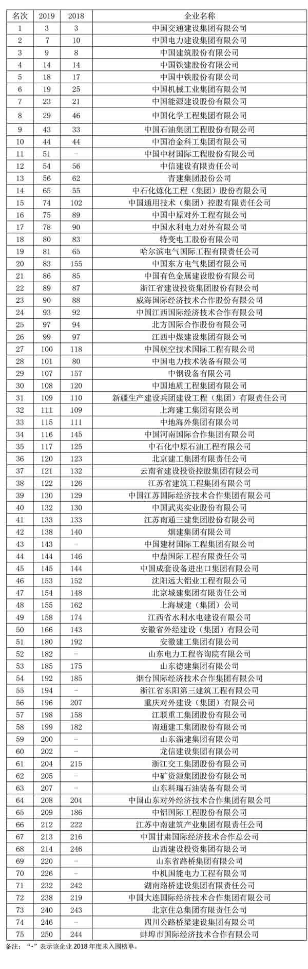 8月22日,2019年度美國(guó)《工程新聞紀(jì)錄(ENR)》“全球250家國(guó)際承包商”榜單揭曉。