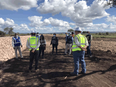 4月24日,在莫桑比克國家重點工程Corumana即將竣工的關(guān)鍵時刻,莫政府公共工程部常務(wù)副部長Cecilia Chamutota女士在國家水務(wù)局局長、國家自來水公司總經(jīng)理的陪同下,帶領(lǐng)政府相關(guān)部門負責(zé)人,視察項目建設(shè)情況。